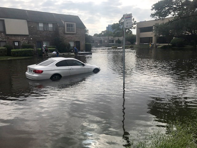 Erik Verduzco was among those helping to rescue stranded families and pets as water rose near Halff’s Houston office location.